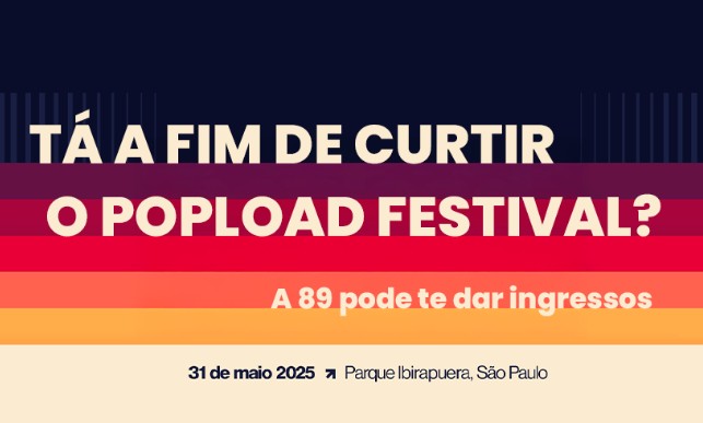 A 89 FM A Rádio Rock FM FM 89.1 de São Paulo está promovendo uma ação promocional que pode levar um ouvinte e um acompanhante ao Popload Festival 2025. O evento, conhecido por destacar nomes relevantes da cena independente, será realizado no dia 31 de maio, no Parque Ibirapuera, na capital paulista.