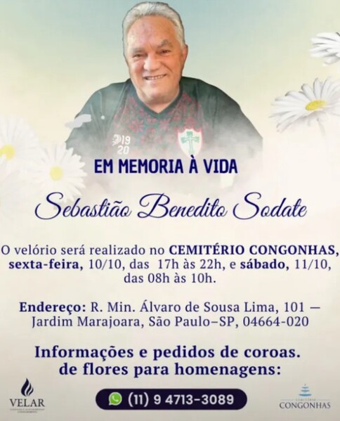 “A Portuguesa SAF lamenta profundamente o falecimento do radialista e narrador Paulo Sodate, na madrugada desta sexta-feira (10), aos 70 anos. O ‘Explosão’, como era carinhosamente conhecido, acompanhou de perto a Lusa nas últimas décadas, sempre levando emoção aos torcedores rubro-verdes através de suas inesquecíveis narrações. Nossos sinceros sentimentos aos familiares e amigos.”