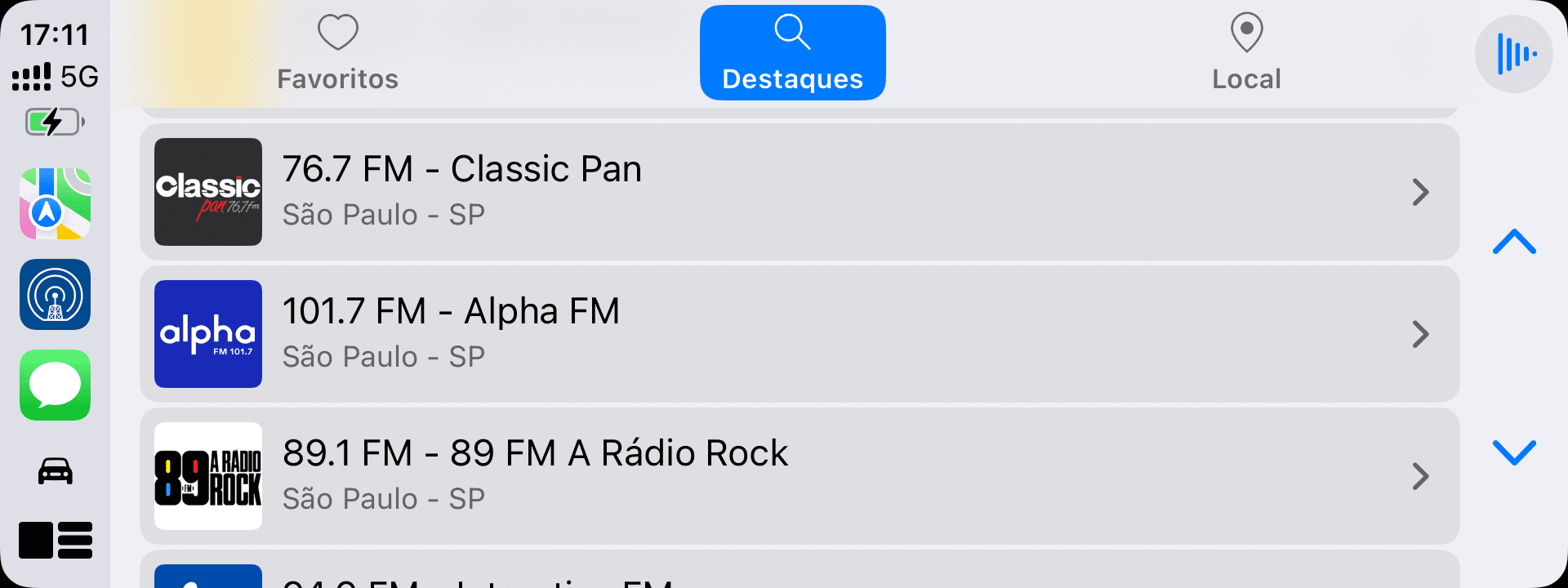 CarPlay executando o App Tudo Rádio em um veículo automotivo