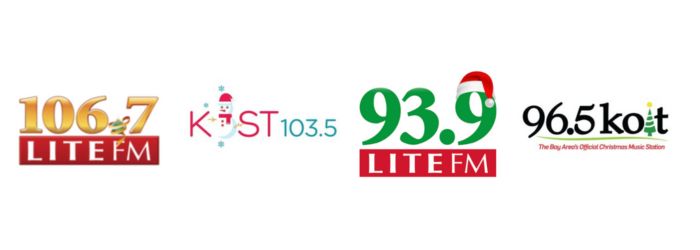 Lite FM NY, KOST FM Los Angeles, Lite FM Chicago e KOIT San Francisco, com seus logotipos temáticos para o período