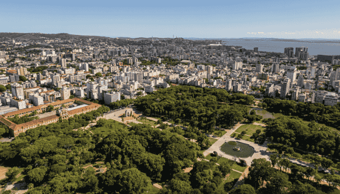 Vista panorâmica de Porto Alegre, com destaque para o Parque Farroupilha (Redenção) / Biblioteca Canva