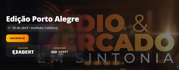 Já estão abertas as inscrições para a primeira edição do Rádio & Mercado em Sintonia em Porto Alegre. O evento, promovido pela ABERT em parceria com associações estaduais de radiodifusão, será realizado no dia 30 de abril, no Espaço Caldeira, reunindo profissionais da publicidade, anunciantes e radiodifusores. A iniciativa visa atualizar o mercado publicitário sobre o atual momento do rádio no Brasil e no mundo, detalhando como o veículo é relevante para anunciantes e para a sociedade. Após Porto Alegre, o Rádio & Mercado em Sintonia terá edições em Belo Horizonte, São Paulo e Fortaleza.