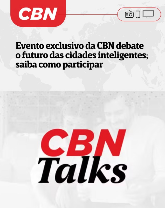 A CBN FM 90.5 de São Paulo realiza no próximo dia 29 de abril mais uma edição do projeto CBN Talks, desta vez com o tema “CBN Cidades Inteligentes”, no Experience Hall, na capital paulista. O evento irá discutir como o uso de dados e a inteligência artificial estão impactando a gestão urbana, tornando as cidades mais seguras, eficientes e conectadas. A iniciativa conta com apoio da Prefeitura de São Paulo e do Governo do Estado.