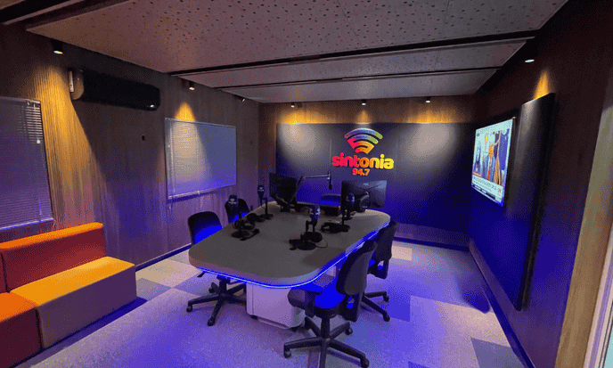 Além da parte visual, os ambientes receberam tratamento acústico específico, com materiais voltados ao isolamento e ao condicionamento sonoro. A proposta é garantir equilíbrio entre absorção e reflexão sonora, favorecendo a operação diária e a qualidade do áudio produzido nos estúdios.